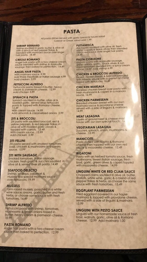 Linguini tossed with our homemade sauce of fresh basil, walnuts, garlic and olive oil topped with Romano cheese.