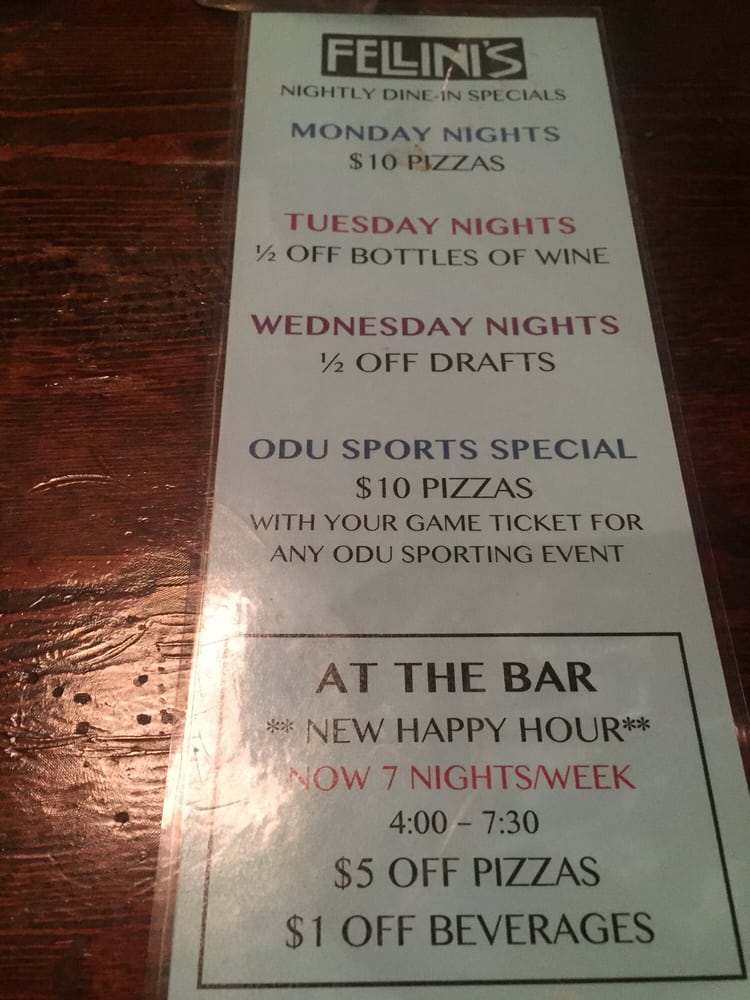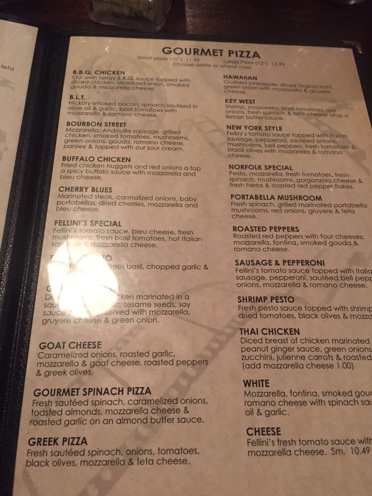 Fellini's, located in Norfolk, VA, offers a diverse menu of Italian-inspired pizzas and burgers. The restaurant prides itself on its many vegetarian options and eco-friendly practices, including compostable containers and plastic-free packaging. With a casual atmosphere and welcoming service, Fellini's is a favorite among locals and visitors alike. Customers rave about the flavorful dishes, such as the garlic chicken pizza and lasagna, which are praised for their generous portions and delicious flavors. The cheese bread, pepperoni sausage pizza, and specialty cheeseburger pizza are also highly recommended by patrons. Whether you dine in or opt for delivery, Fellini's provides a satisfying dining experience that will leave you wanting more.